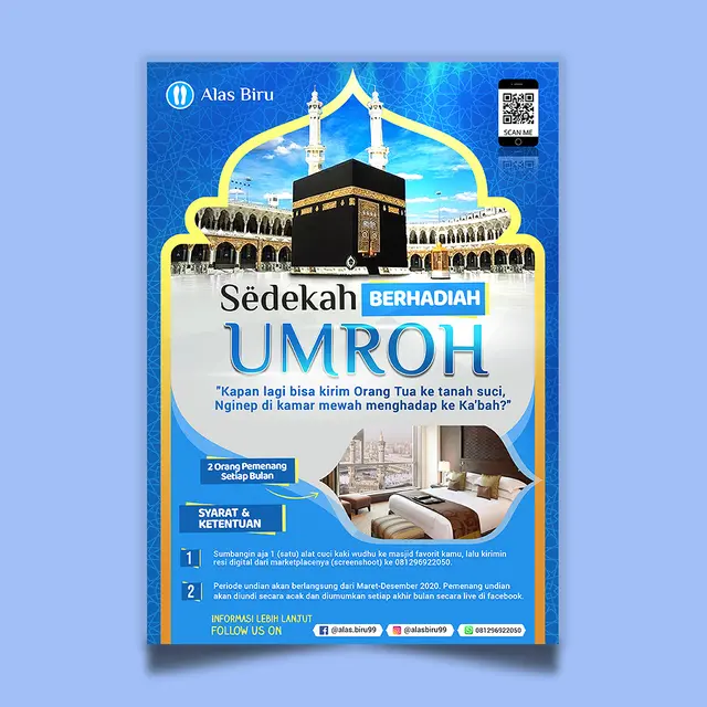 Design Poster Promosi untuk Alas Biru yang Berhadiah Umroh